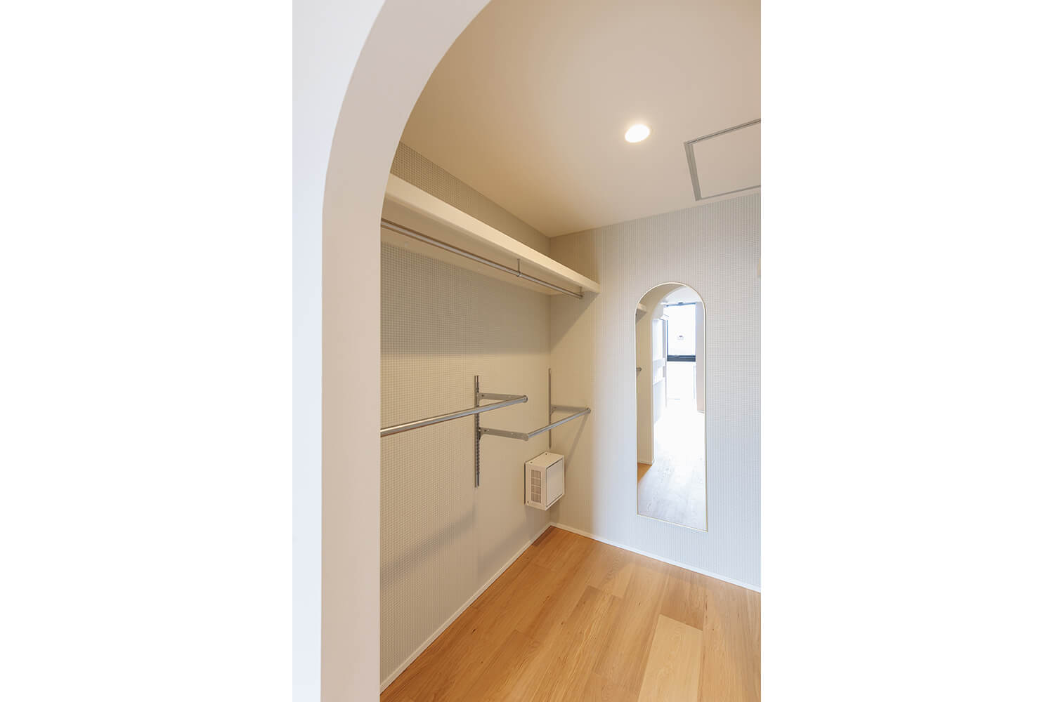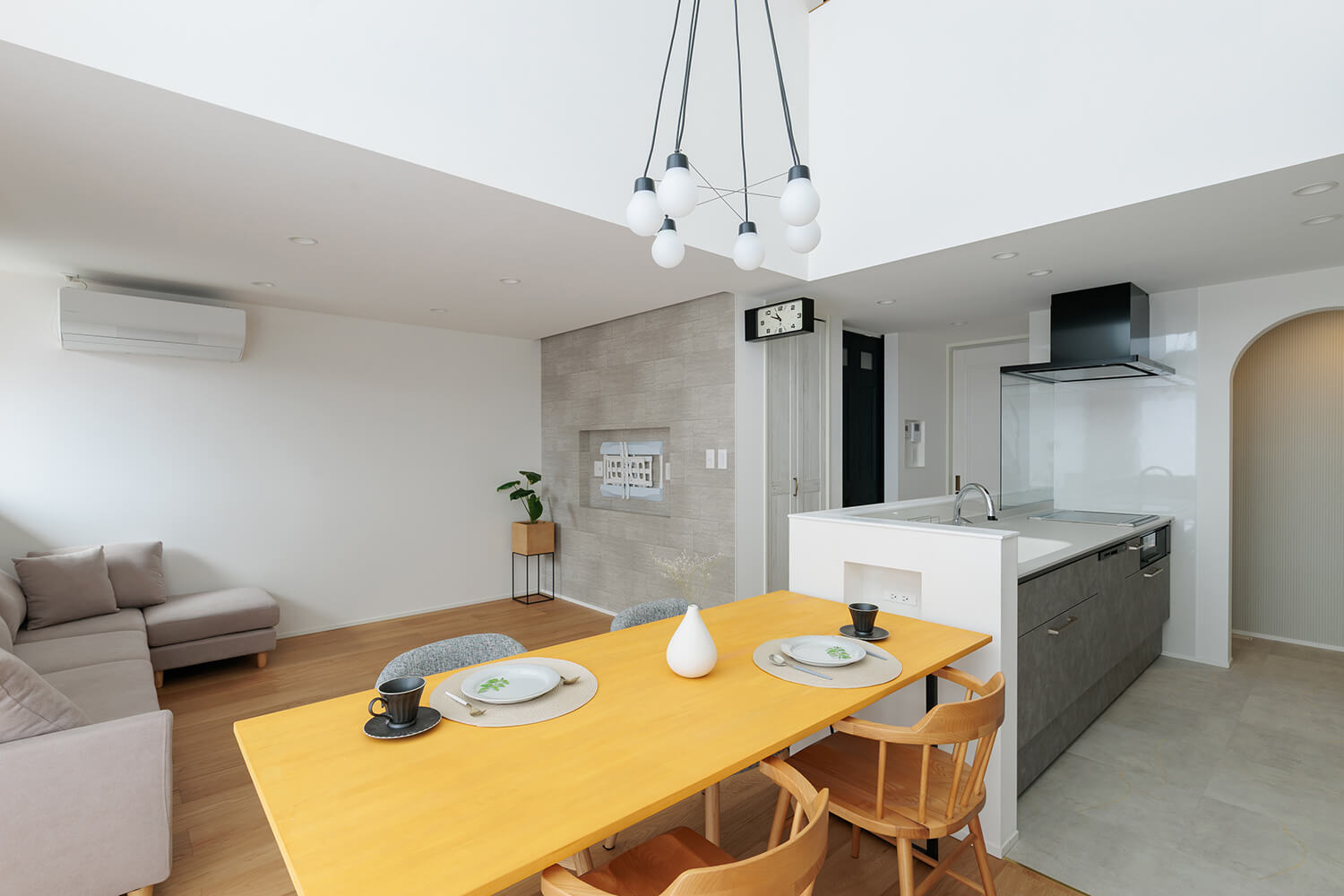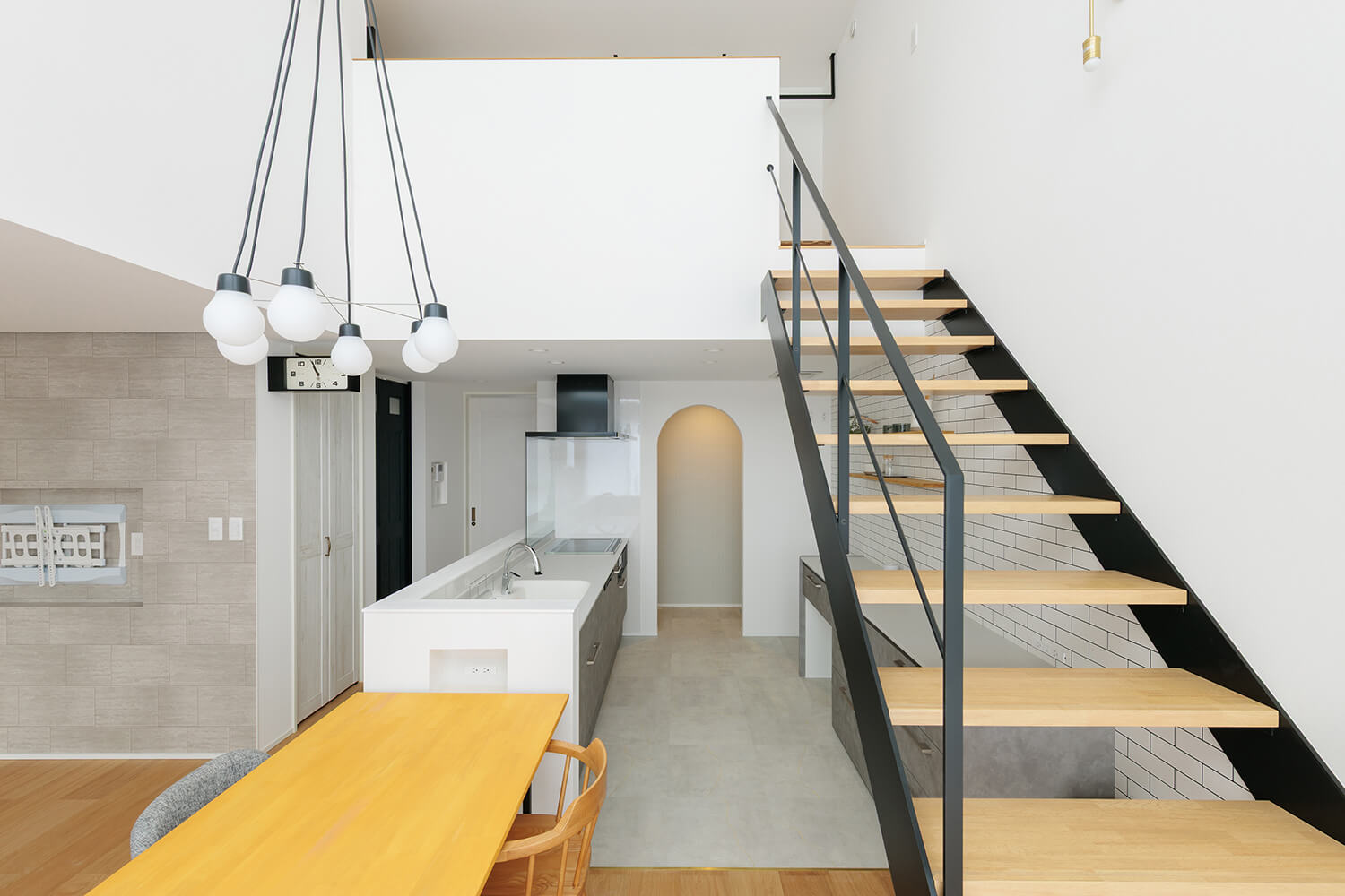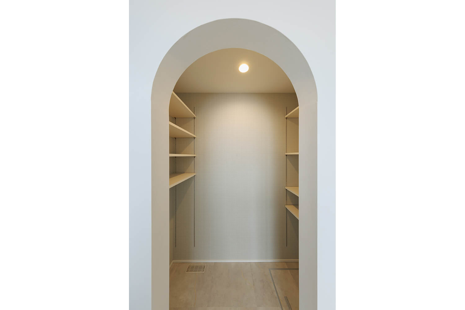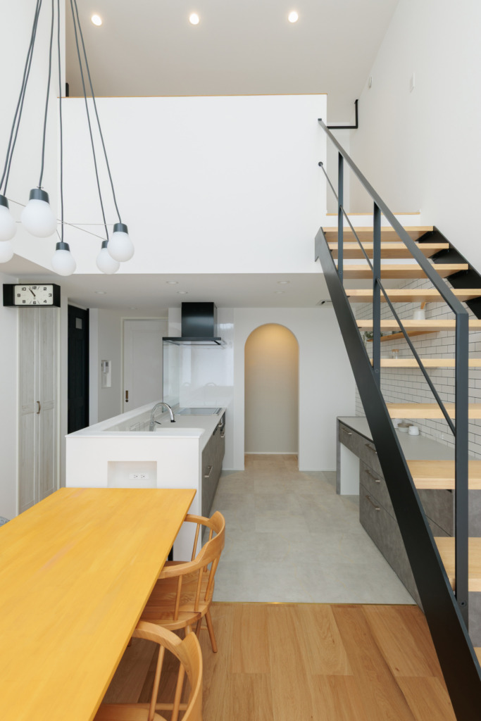 家の中に優しいアーチを取り入れ、ゆるやかに空間をつなぐ。