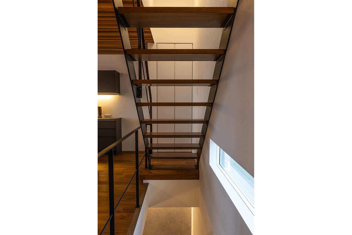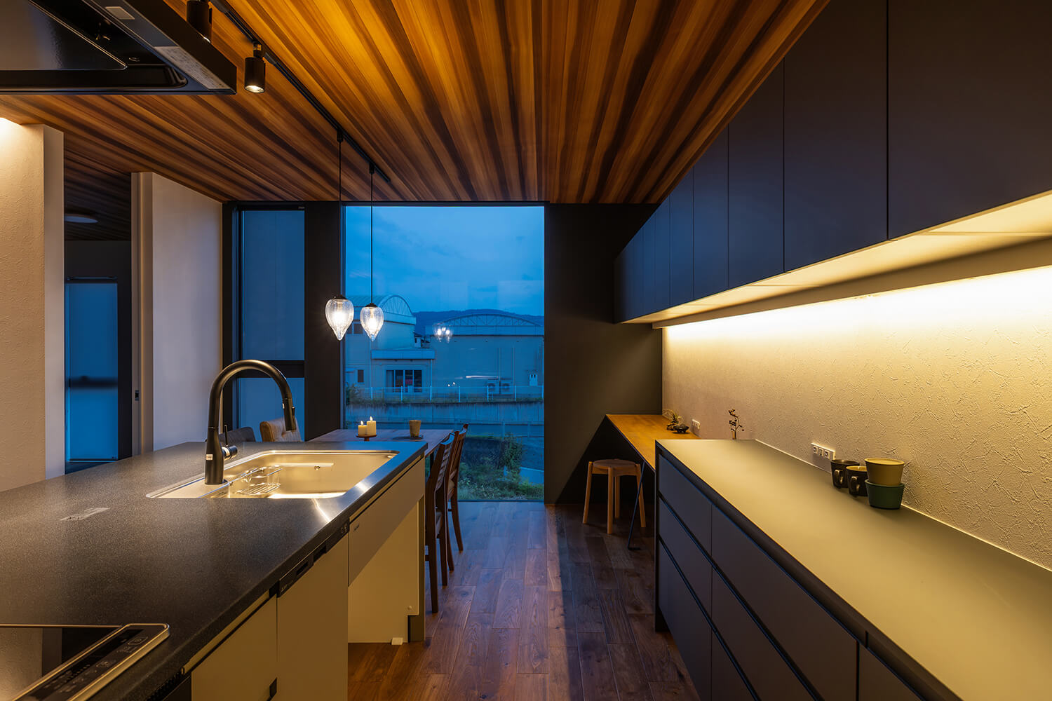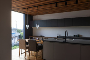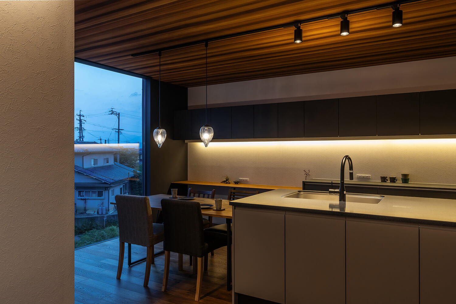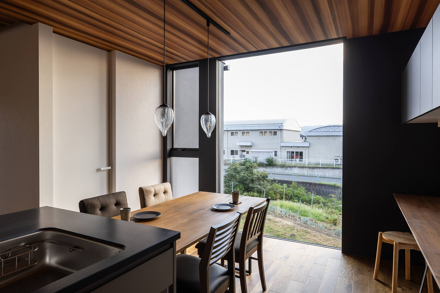 2階に設けたLDKは、光と景色をたっぷり取り込み、外からの視線を気にせず心地よく過ごせる開放的な空間。